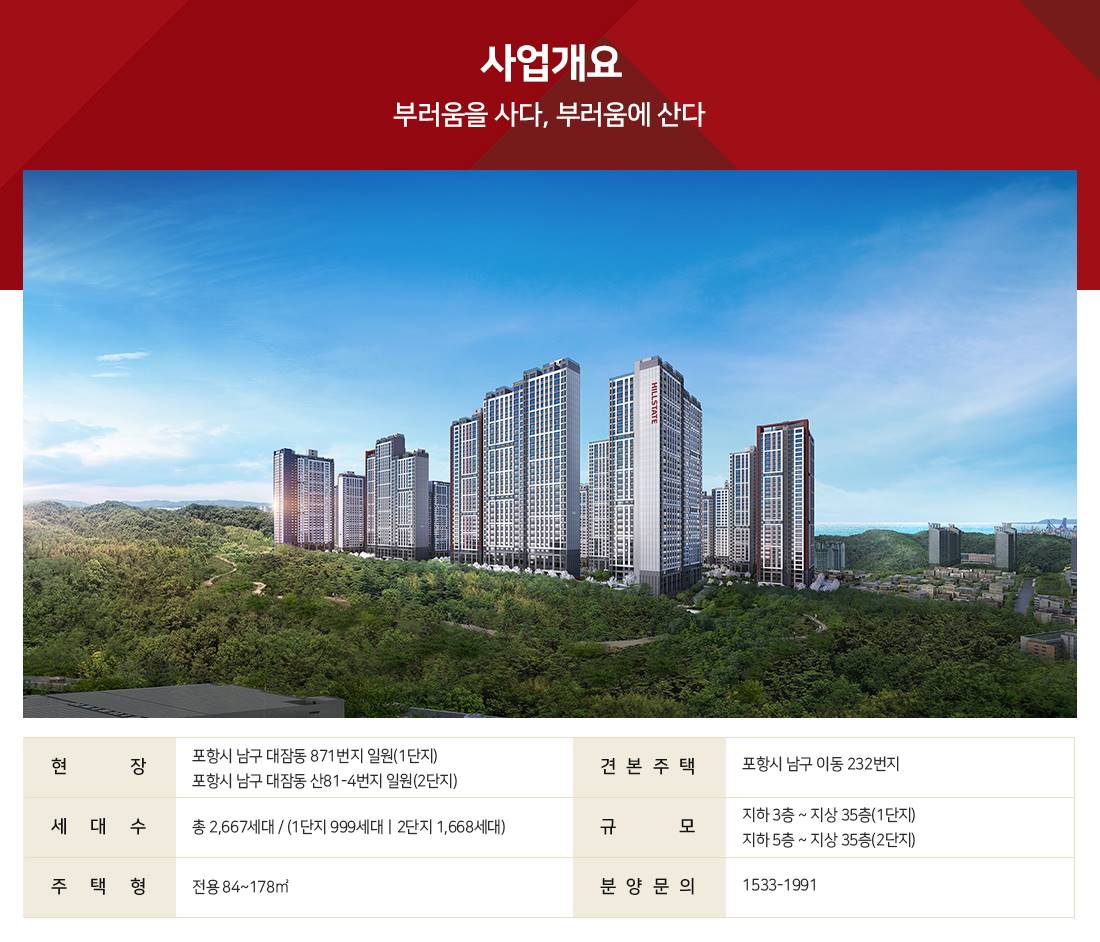 현대건설 힐스테이트 브랜드로 조성되어 높은 주거 만족도와 미래 가치를 모두 갖춘 명품 주거 공간을 선사합니다.
